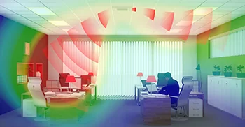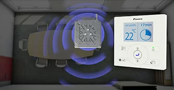 When there is nobody in the room, the presence sensor* adjusts the set point or switches off the unit, avoiding unnecessary cooling or heating and helping to reduce energy consumption. When motion is detected the temperature is reset to its original setpoint ensuring perfect, energy efficient operation.